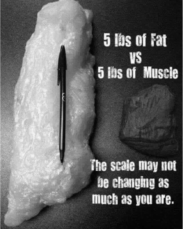 Here’s something to think about: 5 pounds of muscle takes up less space than 5 pounds of fat, but weighs the same.